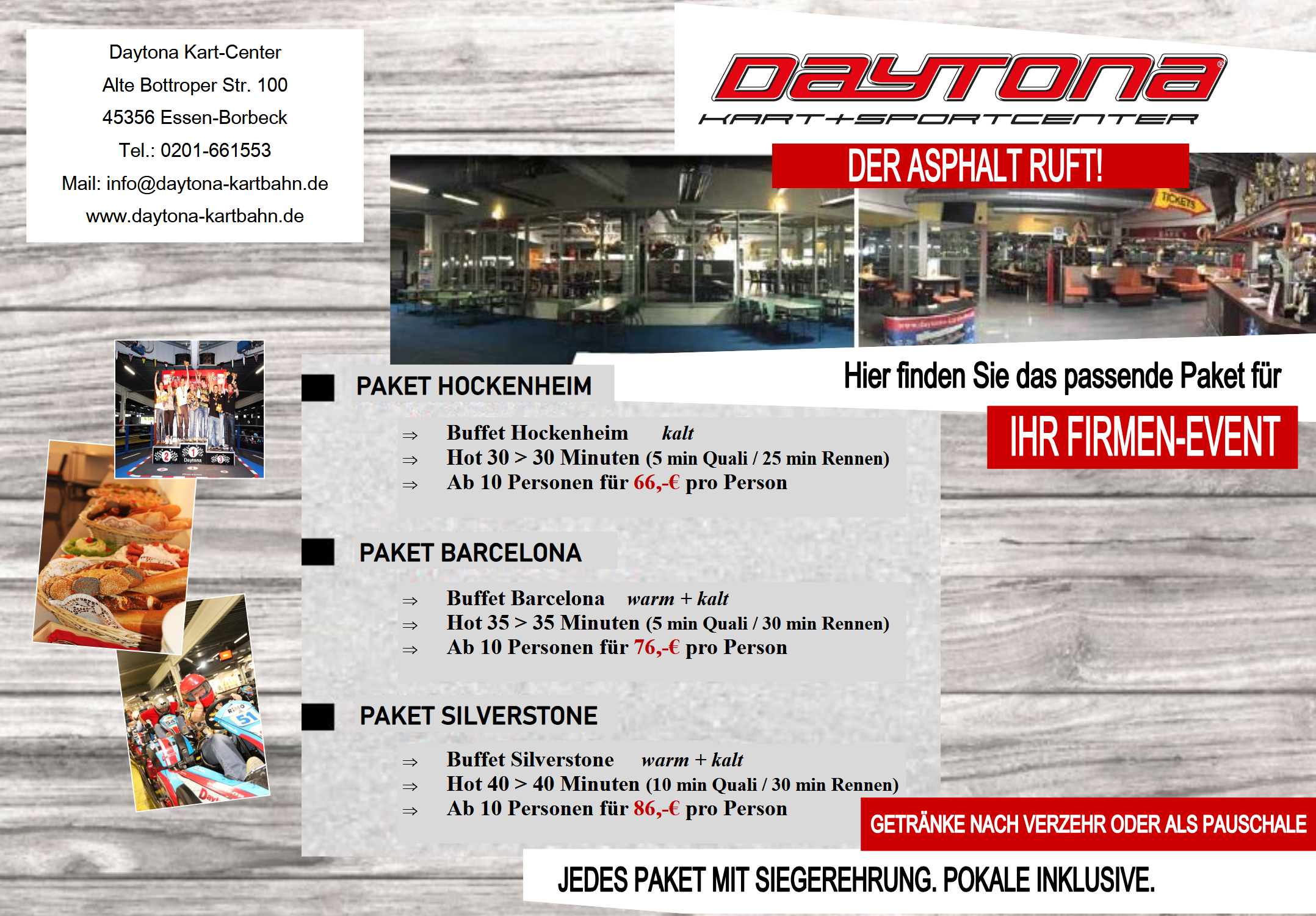 Copyright Daytona Kartbahn, 2026 : Nutzungsbedingungen : Datenschutzerklärung